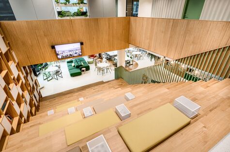 „Z pohledu stavby bylo výzvou vytvořit otvor pro pobytové schodiště mezi dvěma patry, který do značné míry určil ráz celé kanceláře ještě před jejím podrobným rozvržením. Vyžadovalo to perfektní spolupráci s klientem, technickou preciznost a rychlé rozhodování,“ říká Martin Schindler Construction Manager společnosti Penta Real Estate.