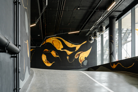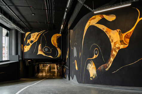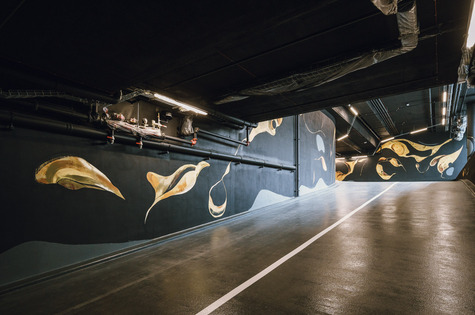 Na uměleckou tvorbu se nezapomnělo ani v podzemních prostorech. Vjezd do garáží nové budovy Zaha Hadid připravil prostor pro dílo s názvem Waves of Mind (Vlny myšlení), které vzniklo spojením motivů umělé inteligence s prací týmu vizuálních tvůrců DRAWetc.