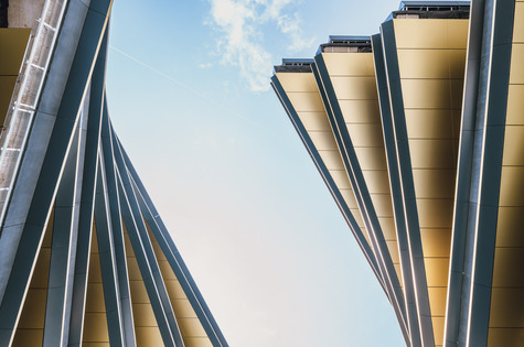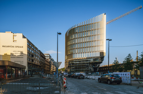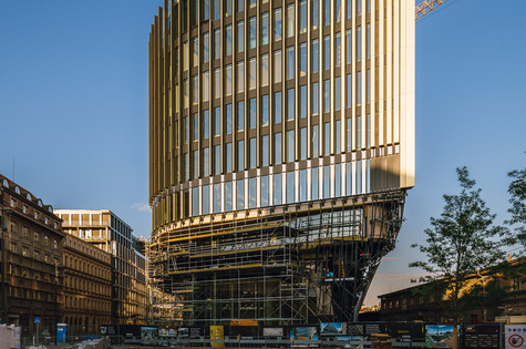 We are covering the facade of Masaryčka with panels made of specially treated aluminium, which gives it a golden shine.