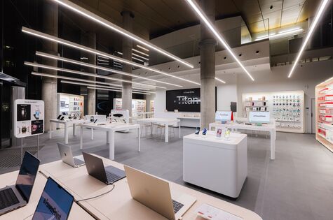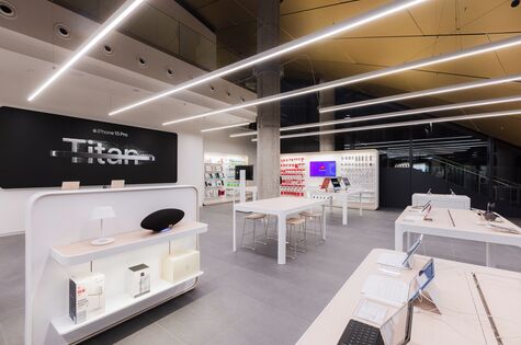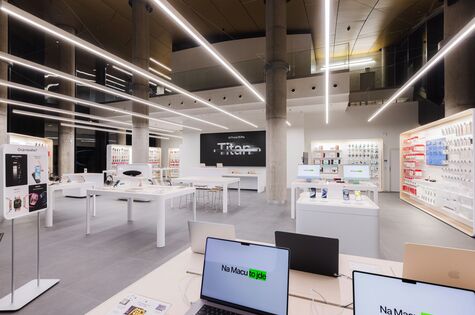 On an area of 224 m2, customers can find a store with an iconic design, where most of the space is occupied by an Apple showroom with products to try out, including a wide range of accessories. Moreover, trained staff and express authorized service are available in-store.