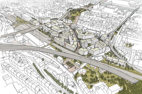 The jury appreciated its urban organisation within a reasonable scale and the designed connection between Těšnov and Žižkov with a new common area at the bottom of Žižkov. In addition, it solves the possibility of the new future location of the Magistrála highway in the Těšnov area, which gives the opportunity to create a new city park.